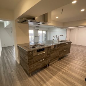 ハイグレードキッチンを引き立てる感じでフローリングや建具を選びました。