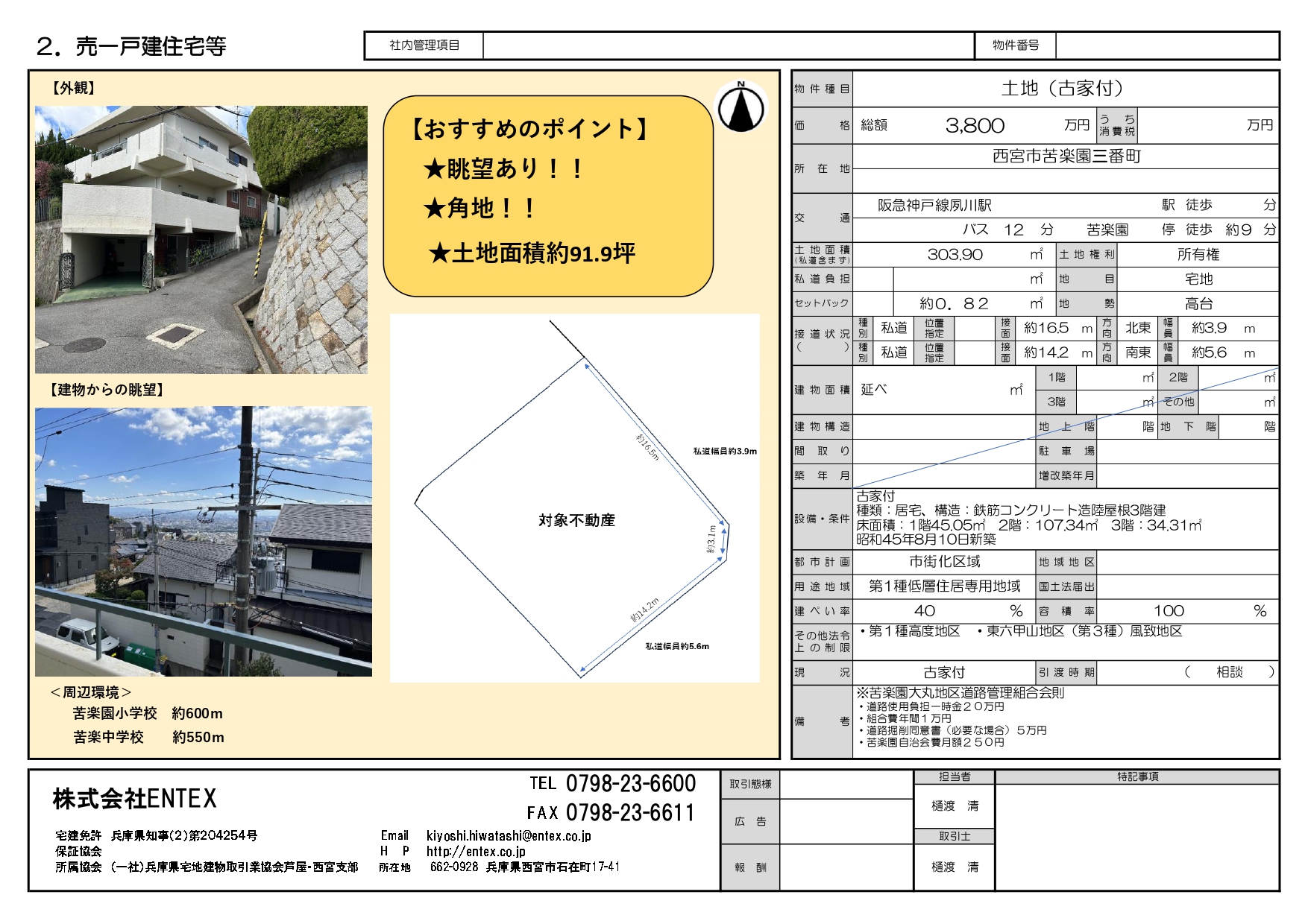 阪急神戸線夙川駅 バス12分徒歩9分 |