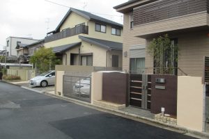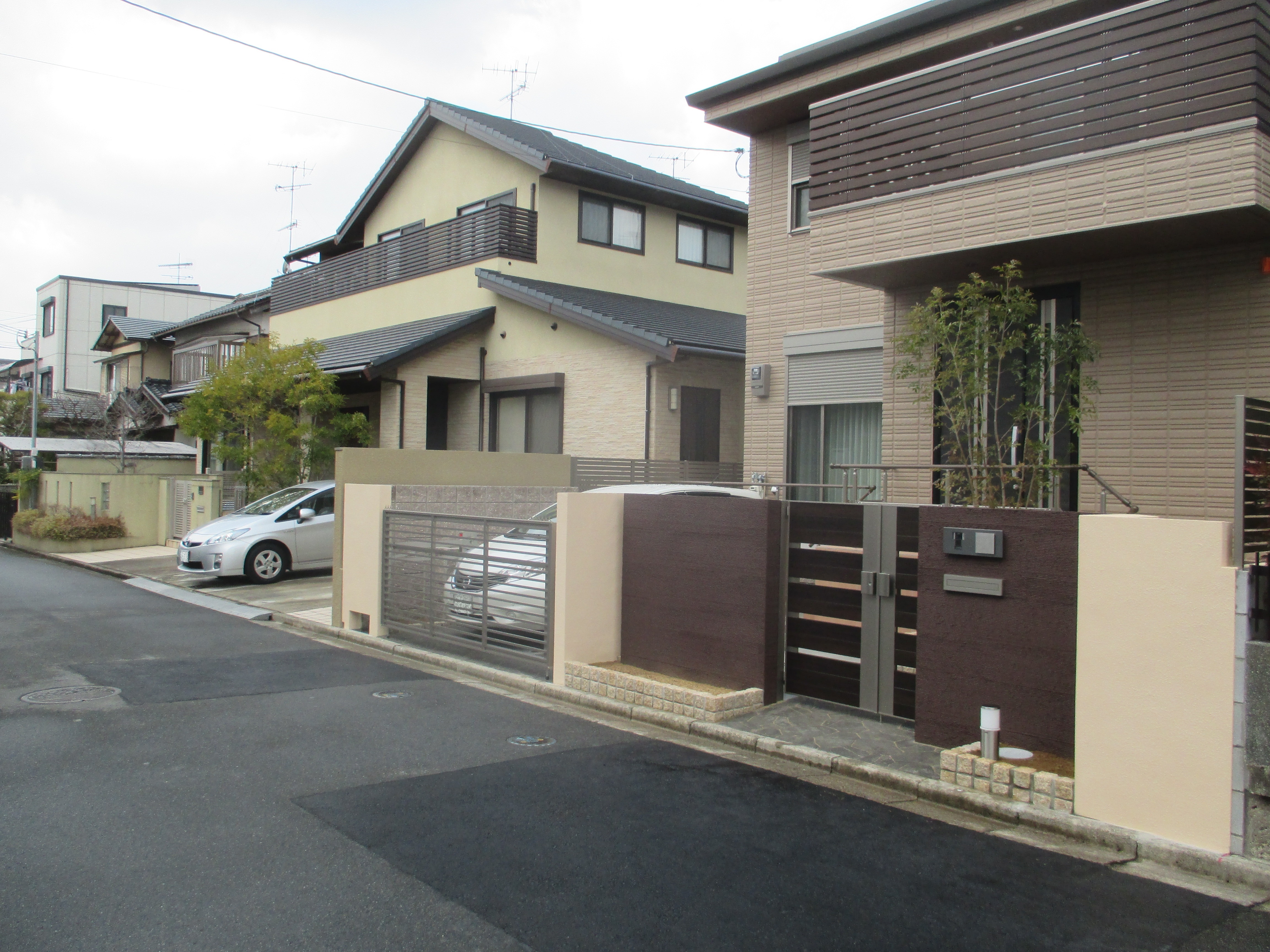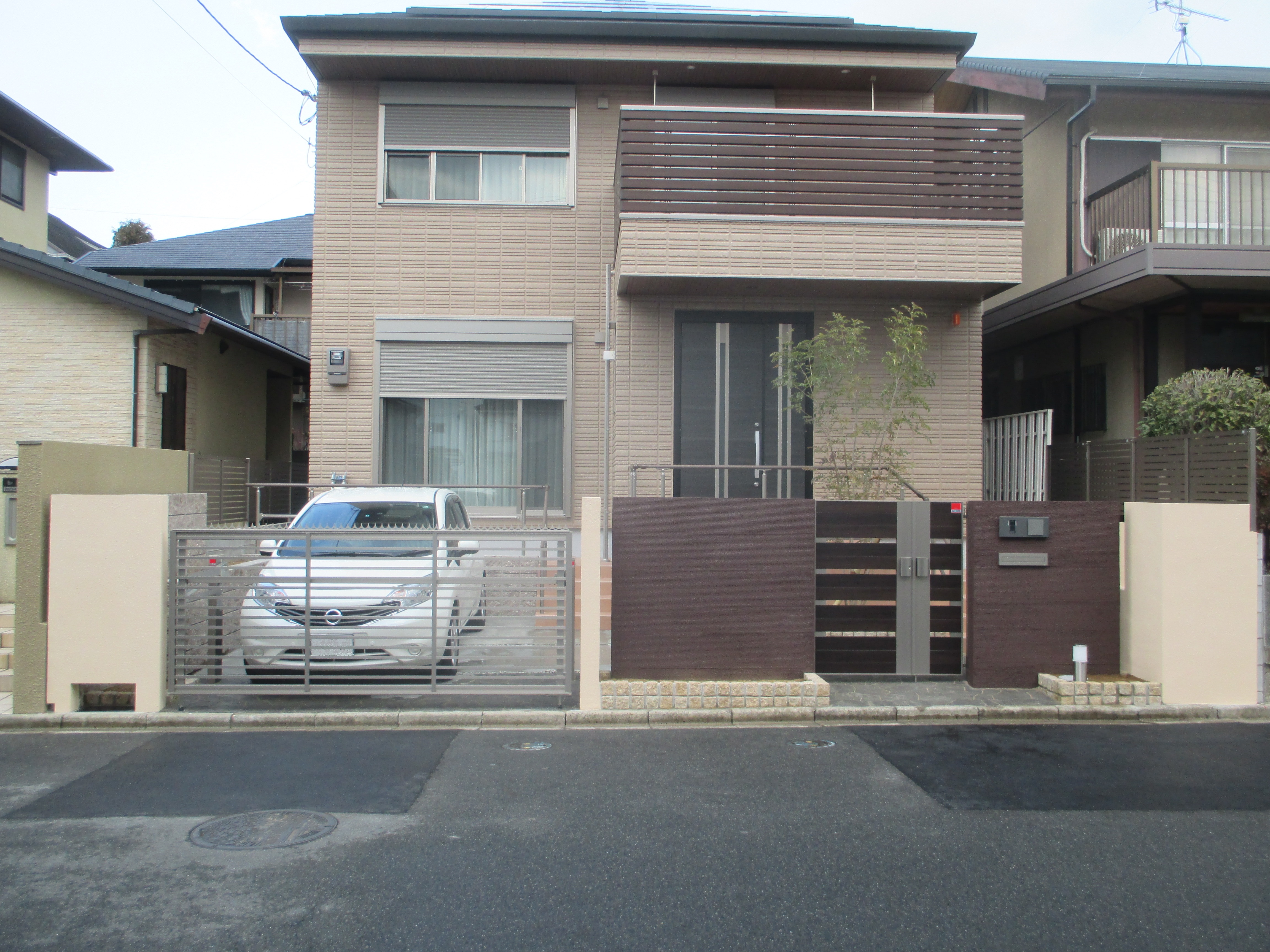 ブラウンの門塀と門扉が外観を引き締めてます。