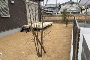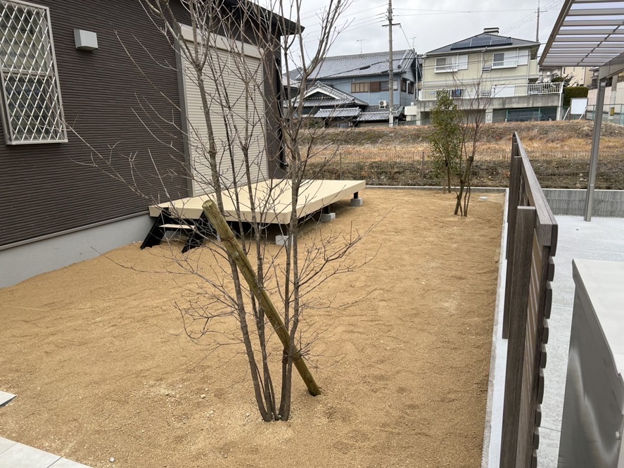 南入りですが間口と奥行があるので、プライベートスペースのお庭を確保。