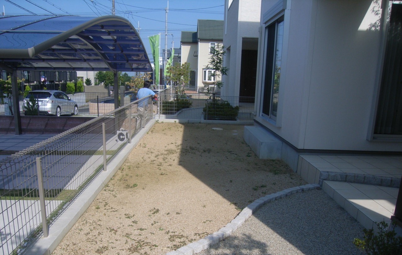 小物もアクセントになり、モデルハウスのようなお庭に仕上がりました。